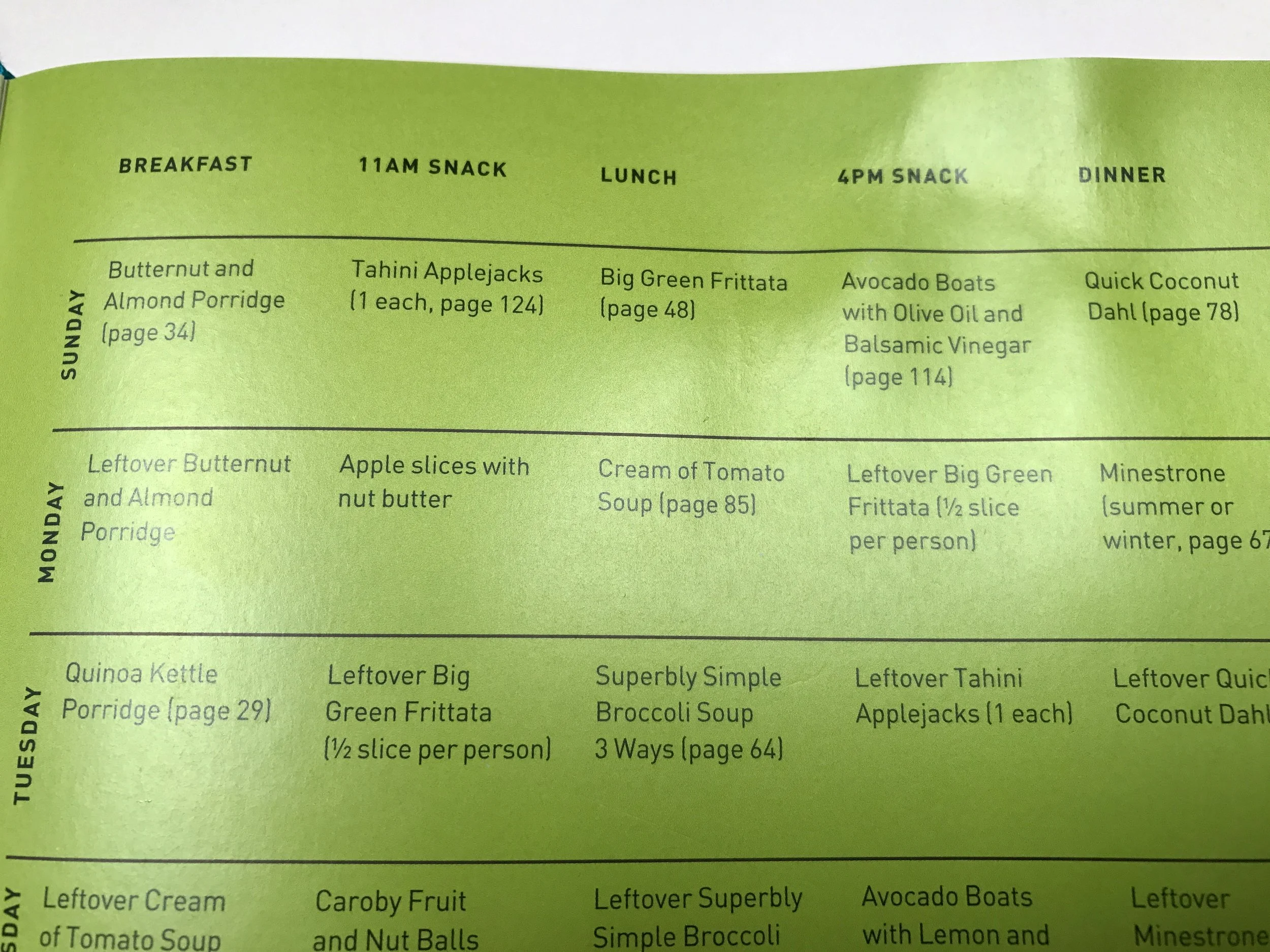 A snapshot of the Good + Simple 7-Day Reboot meal plan